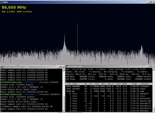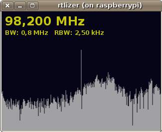 Para convertir el Raspi en un sencillo analizador de espectro usamos el programa RTLIZER, que OZ9AEC ha desarrollado basándose en las librerías rtl_sdr y kiss fft.