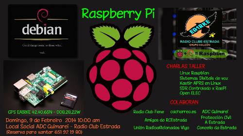 Este año queremos empezar realizando la primera charla relacionada con la RasPi de cómo instalar un sistema Linux-Raspbian, aplicaciones para APRS-Xastir, SDR-Pi controlado remotamente y sus múltiples utilidades y variantes sobre la Radioafición y el contenido multimedia.