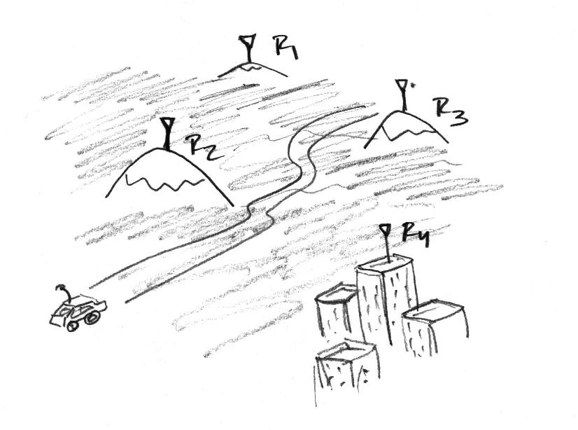 En cualquier caso, seamos condescendientes y pensemos que podemos considerar correcto el funcionamiento de los repetidores. Un radioaficionado que se desplaza en su vehículo puede encontrarse , en un momento dado y con respecto a la cobertura efectiva de los repetidores en funcionamiento, en alguna de estas situaciones: está cubierto por un repetidor, por mas de un repetidore simultaneamente, o por ninguno.