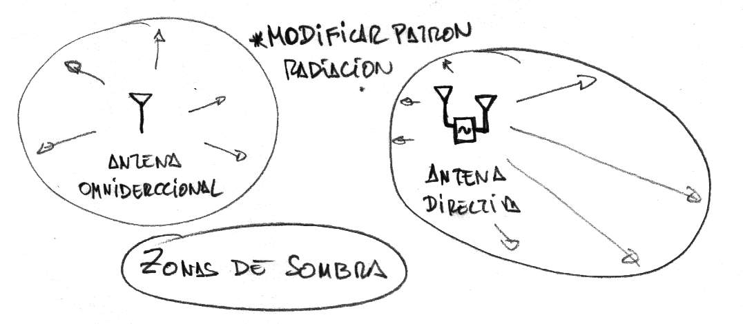 Las "zonas de sombra" sin cobertura, o con cobertura deficiente, pueden solventarse modificando el diagrama de radiación de la antena del repetidor, para reforzar la intensidad de señal en aquellas direcciones donde la cobertura es mas pobre. Es una técnica simple y efectiva que permite aprovechar de manera mas inteligente la energía que sale de la antena.