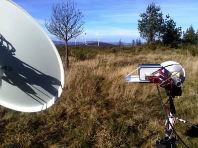 La señal de transmisión de EA1FBU es realmente pequeña, tal vez -5dBm. Pero la recepción de los LNB es extraordinaria, permitiendole realizar el QSO en banda cruzada con Manel, a casi 100 km de distancia.