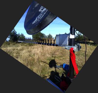 Aunque fué tan solo una prueba parcial, ya que con esta antena la señal recibida por EA1FBU era tan fuerte -aun girándola 90 grados- que no pudimos sacar mucho en claro acerca de su "lado malo". Solo empleamos los 60 mW del transverter y Alfredo estaba a unos 30 km, pero aun así la potencia era claramente excesiva.