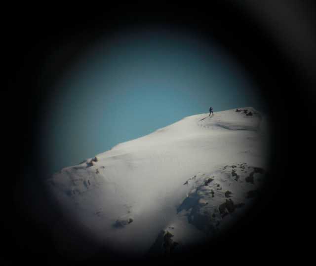 De mañanita alcanzamos la cumbre del Rachón EA1GDH y yo. EA1ICV decidió aguardarnos en el Diablo Sur para no forzar una articulación en proceso de recuperación. Fué el quien tomó las curiosas fotos a través de los prismáticos que se ven en la galería. Por lo demás y dado lo espectacular del día, pudimos obtener algunas imágenes de una gran belleza.