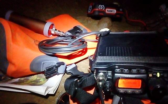 Las siguientes fotos corresponden a la actividad en la cueva del Bierzo. Realizamos la comunicación en las bandas de 40 y 11 metros. Aquí un detalle del FT-817, la WormAnt B40 y al fondo la bateria adicional.