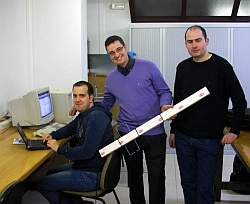 Pinchando sobre la imágen se accede a la galería con los planos, medidas propuestas y diagramas de radiación y ganancia estimados. Construimos el primer modelo de la antena el justo el Domingo anterior al lanzamiento en la Antena Party, y una segunda antena al día siguiente en la misma Universidad, con los satélites ya en órbita y empleando materiales de fortuna. Con ella se recibieron perfectamente los primeros pases, con la sencillez que podeis ver en las fotos del evento. Ademas se subieron también a la web los archivos de modelado para poder simular y trabajar con el programa MMANA.