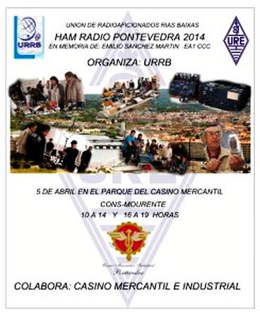 Organizado por la Union de Radioaficionados Rias Baixas (URRB) el próximo Sábado día 5 de Abril, de 10 a 14 horas y de 16 a 19 horas, con una pausa para comer.