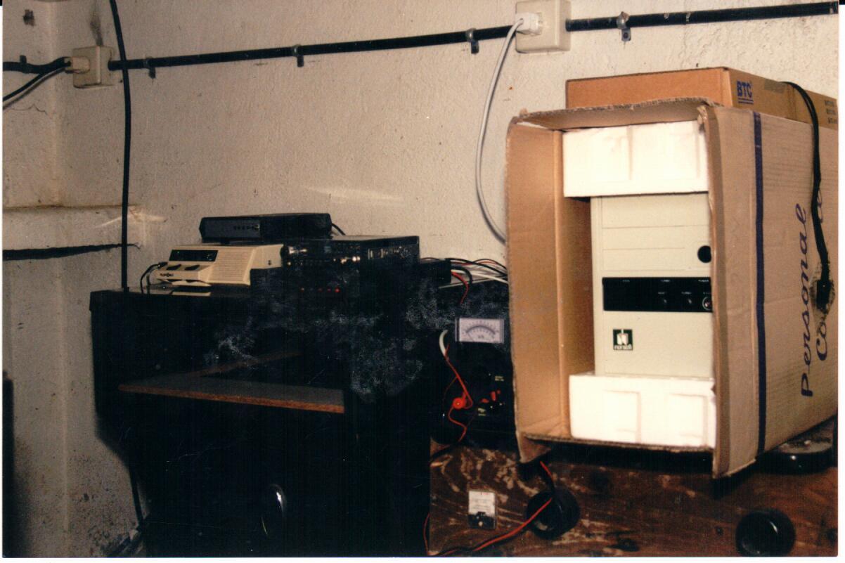 He podido recuperar, casi por casualidad, de forma totalmente inesperada una fotografía de los equipos que constituían la primera BBS que se puso en Ourense. Esta BBS es a la que hago alusión en el monográfico "Cómo se inició el packet en Ourense". En efecto, es la EA1URO-2:UROBBS, la cual estuvo emplazada en las instalaciones de la Unión de Radioaficionados de Ourense en Sabadelle.